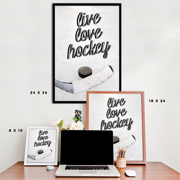 Take a look at this Live Love Hockey design! InspiredPosters offers a collection of unique printed designs you won't find anywhere else. This unique image was creatively designed and printed in-house using UV Printing, a printing process where the ink is cured by UV rays to produce sharp & vivid images with a high degree of color accuracy.